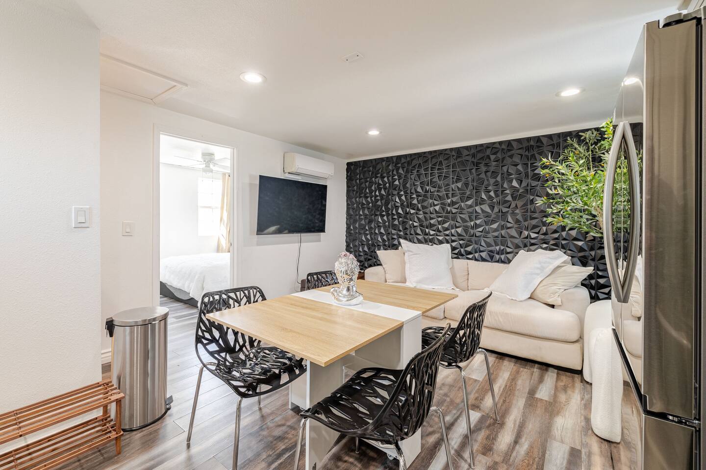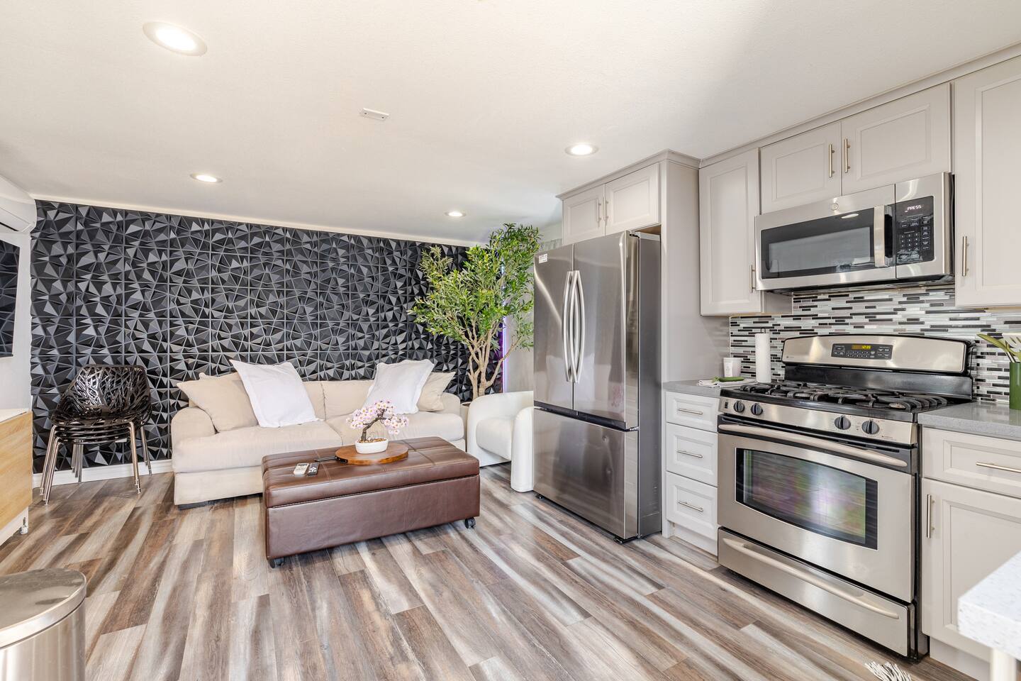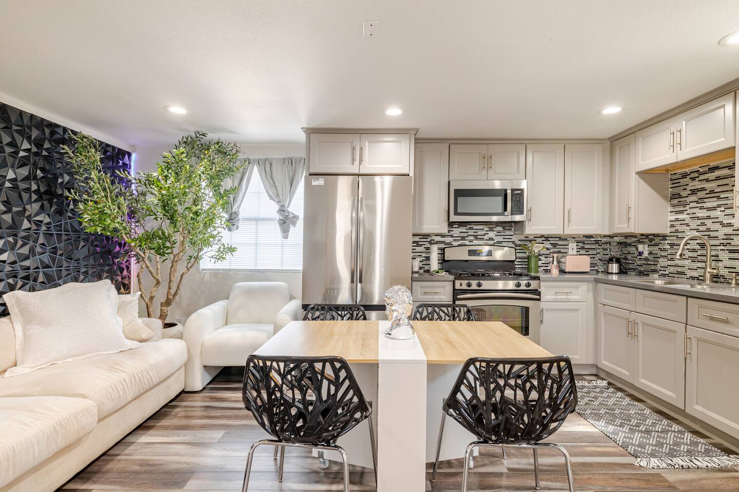 What You’ll Love: ✔ Private Jacuzzi – Relax under the stars with soothing jets and elegant lighting. ✔ Stylish Interior – A beautifully designed space with modern decor and a cozy atmosphere. ✔ Full Kitchen – Equipped with all essentials for home-cooked meals. ✔ Prime Location – Walking distance to the NOS Center, grocery stores, and just minutes from Freeway 215, making travel easy. ✔ Luxury & Comfort – High-end finishes and a warm, inviting space to feel at home.