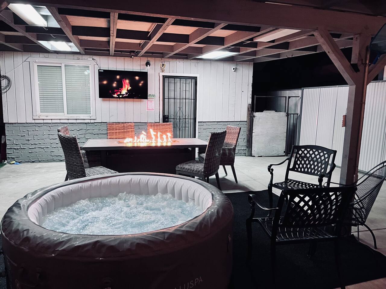 What You’ll Love: ✔ Private Jacuzzi – Relax under the stars in your own bubbling hot tub. ✔ Outdoor Firepit & Lounge – Cozy up in the evenings with great company. ✔ Spacious & Stylish Interior – A modern, cozy design with luxury touches. ✔ Fully Equipped Kitchen – Cook delicious meals with all essential appliances. ✔ Prime Location – Just 6 minutes from the NOS Center, perfect for event-goers. Grocery stores nearby, and just minutes from Freeway 215, making travel easy. ✔ Self Check-in – Convenient smart lock access for a smooth arrival. ✔ Perfect for Groups – Sleeps up to 14 guests comfortably. Additional Details: 🚠No Smoking Allowed inside or outside the property 📍 Close to Shopping, Dining, and Local Attractions 💼 Ideal for Business & Leisure Travelers ⏳ Book your stay today and experience the perfect mix of comfort, luxury, and relaxation!