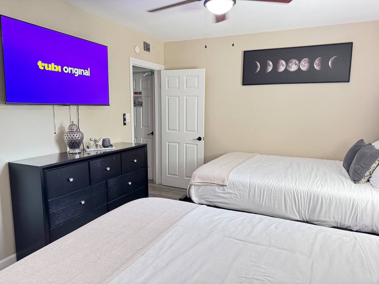 We’re happy to offer early check-in and late check-out options at an affordable rate when available. If the option is open, we’ll gladly let you know, or you can always ask us in advance. If extended hours aren’t possible, please plan to check out on time to allow our cleaning team to prepare for the next guests. Please note that late check-out without prior approval may result in an additional charge, up to the equivalent of the nightly rate. The converted garage is occupied by a long-term tenant and is not part of the Airbnb listing. The backyard and pool are shared. Quiet hours begin at 11 PM. Please keep movie theater volume low in the evenings. One of the trundle beds in the kids’ room doesn’t fully extend — best suited for children. No parties or unauthorized guests allowed. Safety Notice: For the safety of all guests, children must be supervised at all times when using the pool or spending time in the outdoor areas. No child should be left unattended outside under any circumstance. We appreciate your cooperation in helping us maintain a secure and enjoyable environment for everyone.
