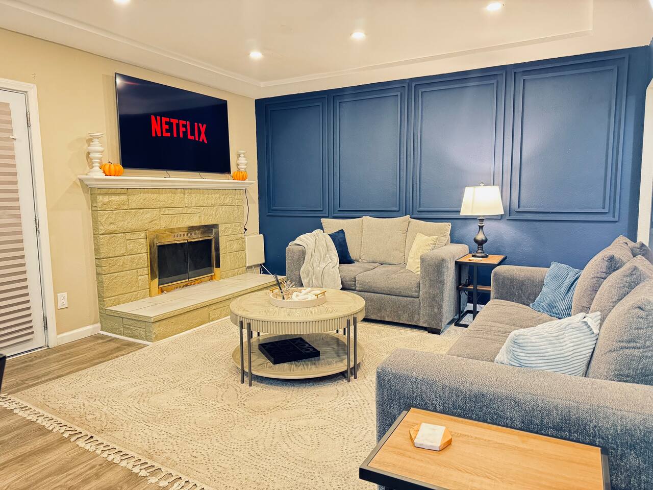 Welcome to this spacious 3-bedroom, 3-bath home — perfect for group stays or family getaways. Enjoy your own private in-home movie theater with a projector and Bose surround sound, cook in the fully equipped kitchen, and relax by the shared pool in the backyard. The layout offers smart LED lighting, comfortable gathering space, and a seamless indoor-outdoor experience. 💡Please note: the garage is a separate unit with a long-term tenant and is not part of the Airbnb rental.